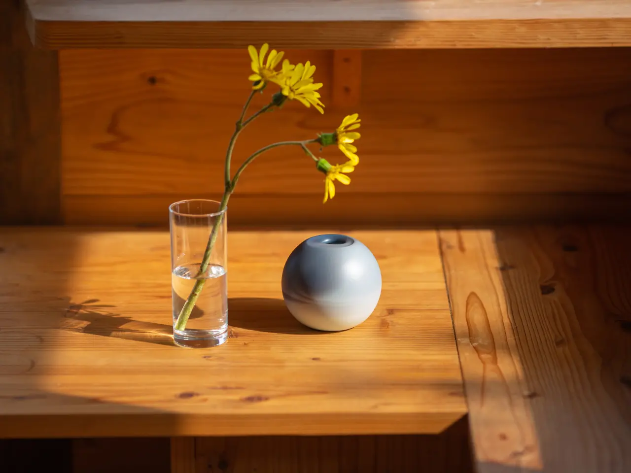 しかしこれは花を飾るものではありません。時間を飾る器なのです。