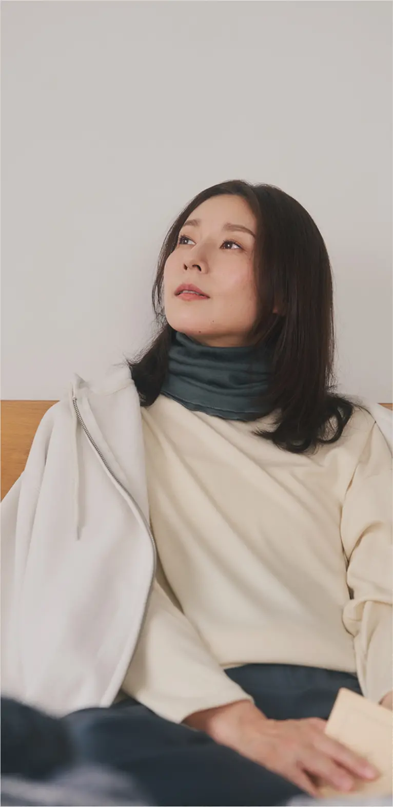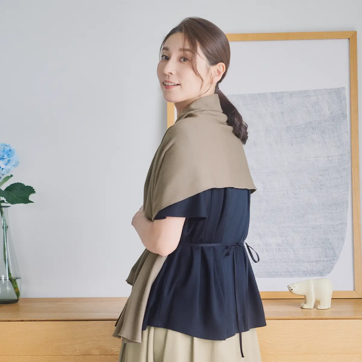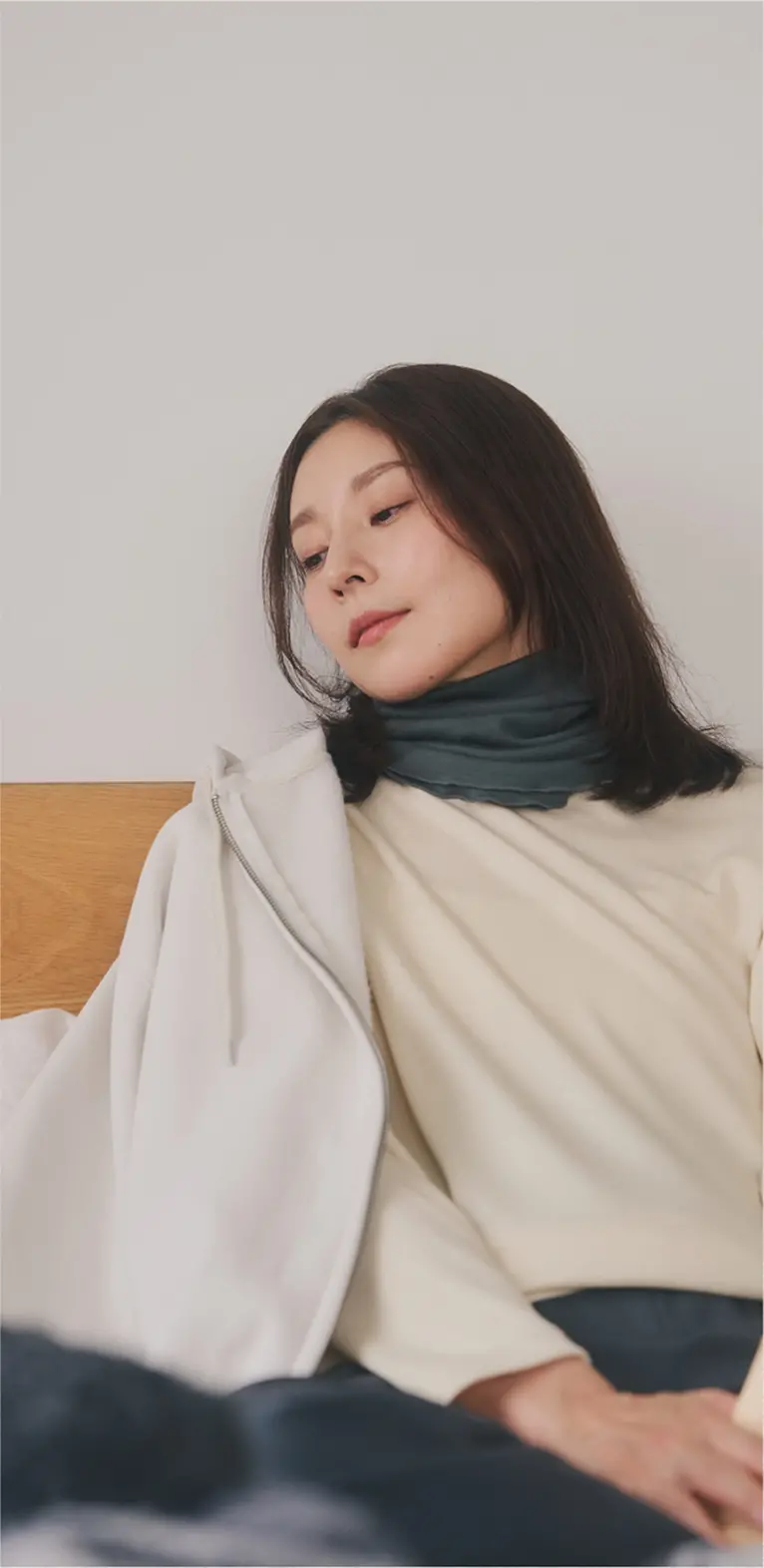 ストレッチ感のある生地を生かし、気軽にかぶるだけで、首をやさしく温めることができるネックウォーマー。