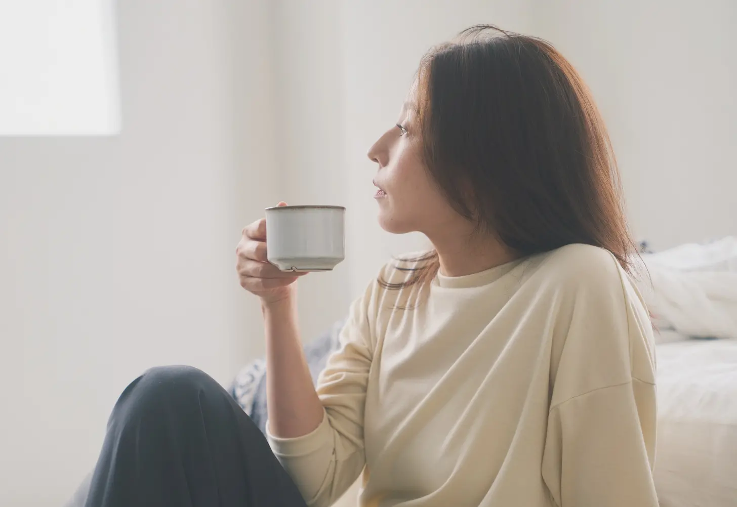 ウール繊維は吸放湿性が⾼く、他の繊維より⾝体から放出される湿気を吸収し、衣服内と外気の状況に応じて、放湿します。このサイクルにより⾐服内も蒸れず、体温を調整し、快適性が維持されます。